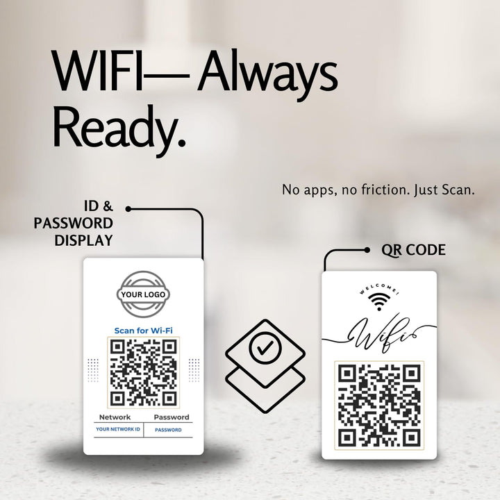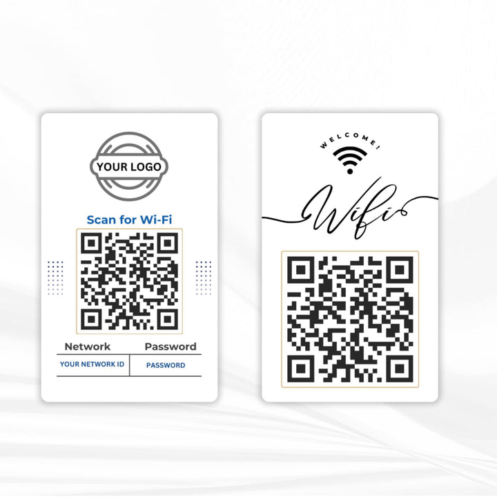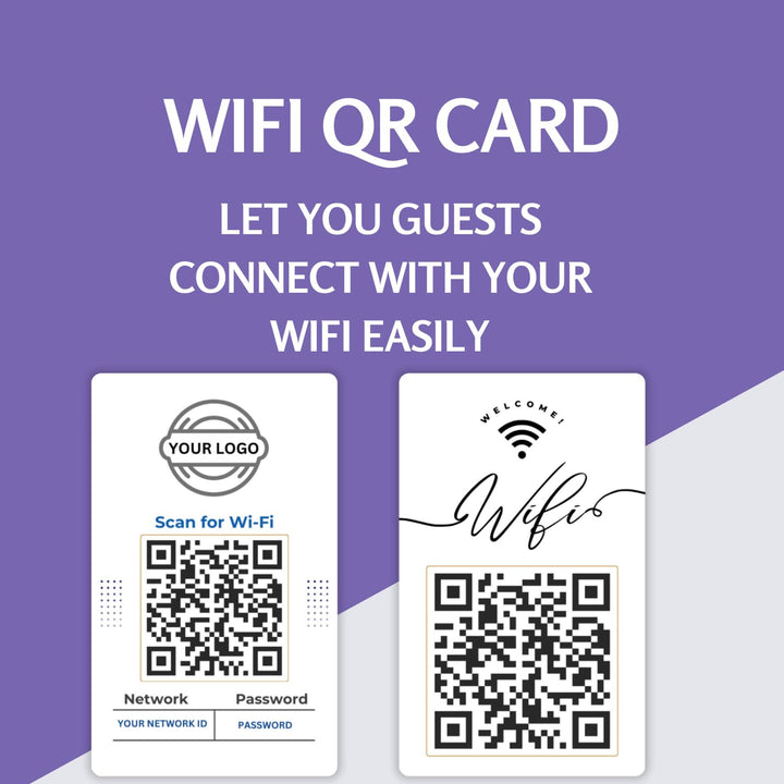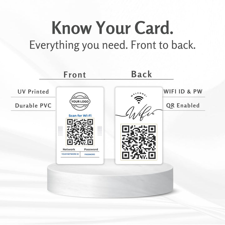 - DUAL-SIDED DESIGN: Premium PVC card with UV printed QR code on front and WiFi network details on back for easy guest access